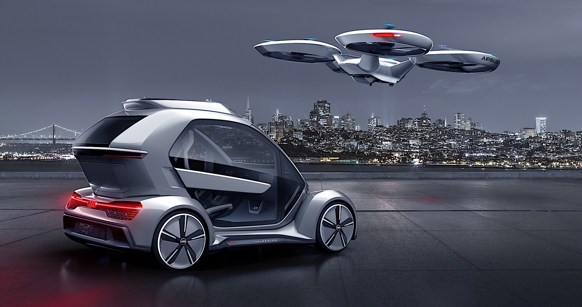 Pop.Up konseptinde Audi otomobil kısmında görev almışken, Airbus ise uçuşu sağlayacak modülü üretmede görev almıştı. Elektrikli motora sahip otomobil, uçuş modülü sayesinde quadrocopter gibi de kullanılabiliyordu ve iki kişilik yolcu kapasitesine sahipti. Ayrıca 5. seviye otonom sürüş ile üretilecek olan hava-taksi modeli sürücüsüz olacak. Bu proje ile şehirlerde oluşan trafik, gürültü ve çevre kirliliğine bir çözüm üretilmesi de planlananlar arasında.