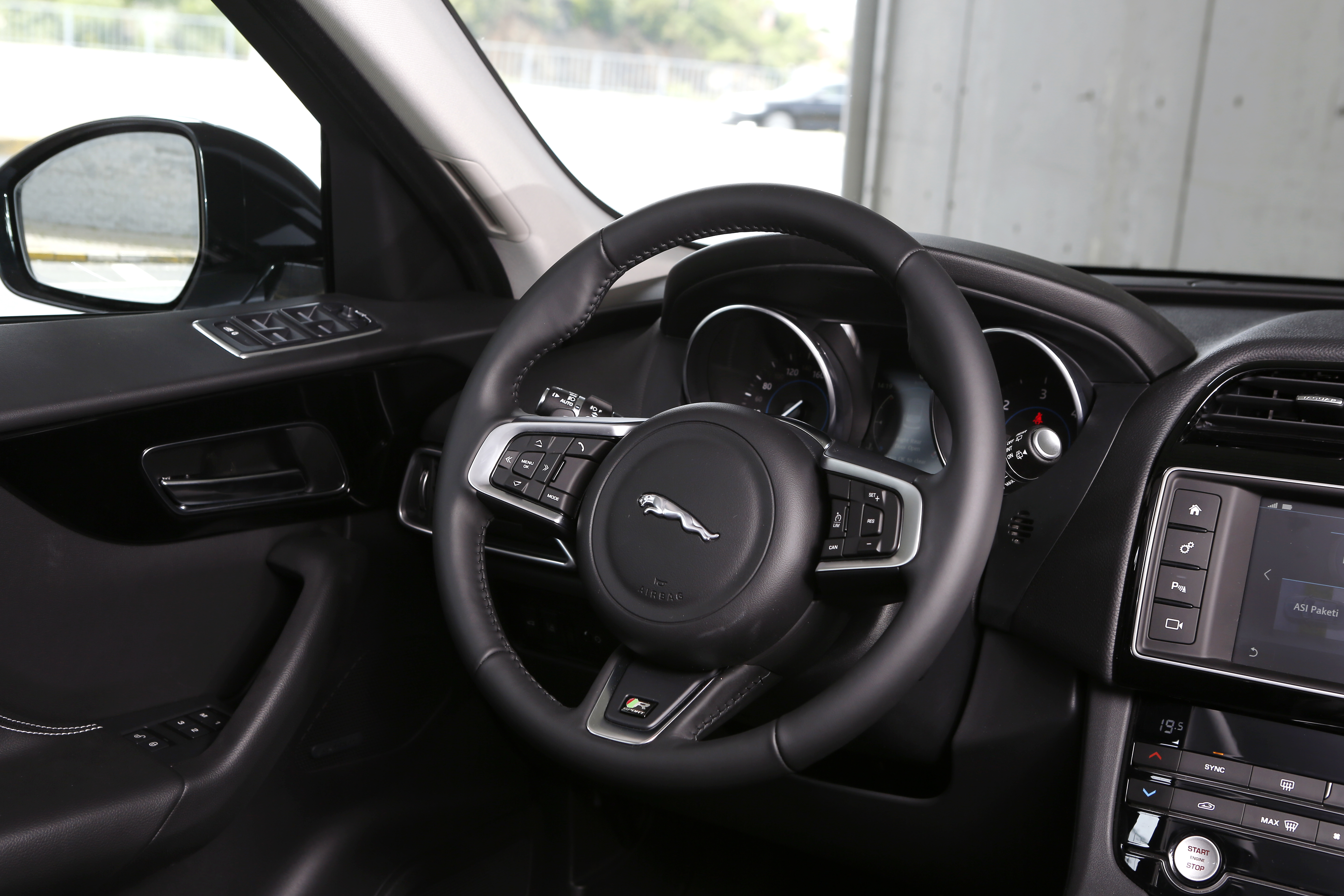 Donanımlardan bahsetmişken F-Pace’in bu konuda bazı önemli artıları ve eksikleri var. Öncelikle test aracımızdaki 380 Watt gücündeki Meridian imzalı ses sistemi çok kaliteli. Fakat bu kaliteyi yüksek sesle dinleyemiyorsunuz. Bunun sebebi kalitenin yüksek seste bozulması değil, belirli bir seviyenin üzerinde sesi yükseltmiyor olması. Bir yerden sonra sesi boşuna yükseltiyorsunuz. Yine test otomobilimizin donanımında hafızalı, elektrikli ayarlanır direksiyon ve sürücü koltuğu bulunsa da koltuk ısıtma donanımının bulunmaması dikkatimi çekti. Bunun yerine sunulan devasa açılır cam tavan ise F-Pace’in beğenimi kazanan donanımı oldu.