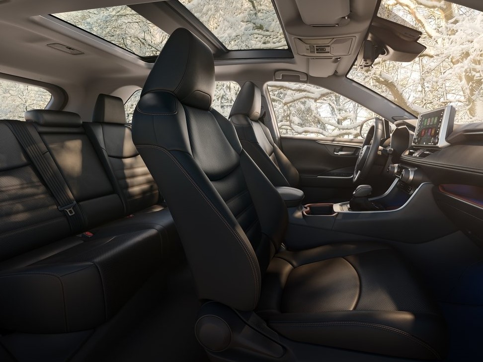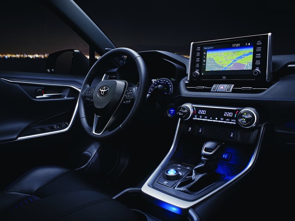Yeni Rav4 iç mekanda eski sıkıcılığından arınmış ve ferah görünüyor. İlk olarak Avalon’da gördüğümüz iç mekân tasarımıyla fazlasıyla benzeşiyor. Direksiyon başına ilk geçtiğimizde yeni nesil kadranlar bizi karşılıyor. Yakıt, hararet ve devir göstergelerinin yanlara analog olarak dağıldığı kadranın orta kısmında ise tamamen dijital bir ekrana yer verilmiş. Orta konsolda ise gömülmek yerine üstüne yerleştirilmiş bir multimedya ekranı bulunuyor. Standart haliyle 7 inç olan ekran opsiyon olarak 8 inç ile alınabiliyor. Toyota’nın Entune 3.0 multimedya sistemini içerisinde bulunduran Rav4 Apple CarPlay ve Amazon Alexa gibi asistanlara sahip. Aynı zamanda kablosuz şarj desteği ile elektronik park freni ilk defa sunulan donanımlar arasında bulunuyor. Bunlara ek olarak JBL üretimi 800 Watt gücünde bir ses sistemi opsiyon listesinde sunuluyor.